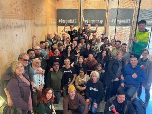 Sitting is the new smoking! You don’t want to bring people together only to have them all sit down into clique groups. You want people standing, mingling and high-fiving. This is achieved through a shared group activity. I’m very impartial to axe-throwing for obvious reasons, but you can also do bowling, volleyball, pinball, or any number of activities.